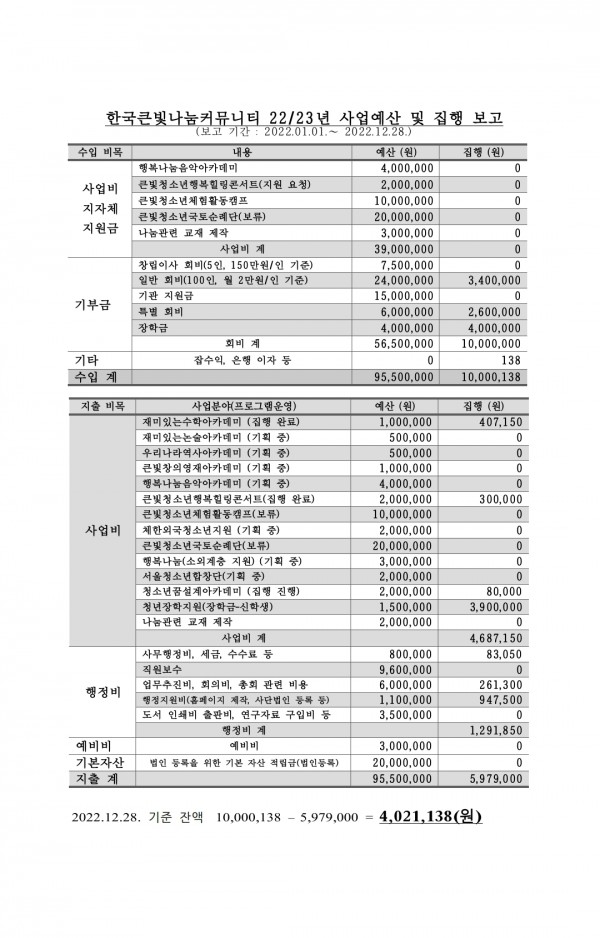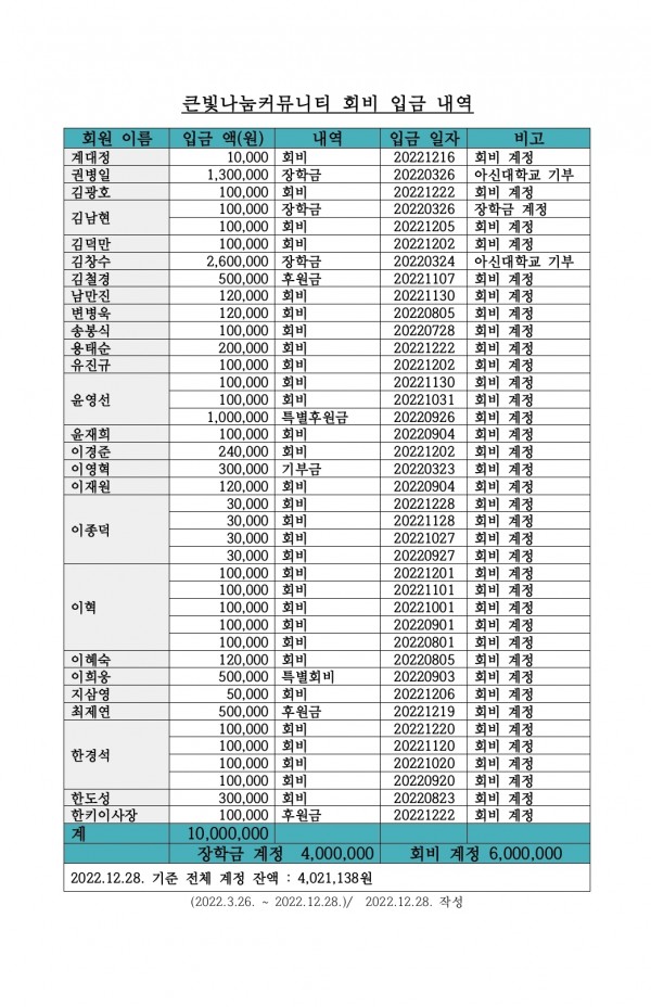 2022 회비 입금 내역