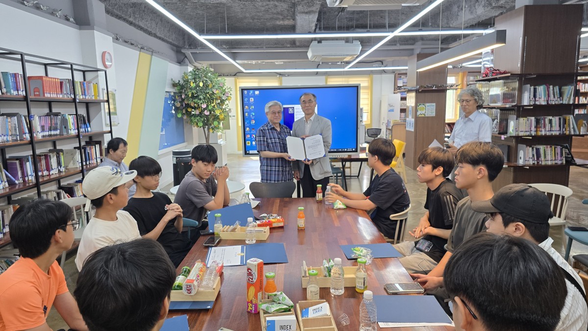 2기 리더십아카데미 수료식 장학금 전달 2025.8.02 경신중학교 도서관 > 갤러리