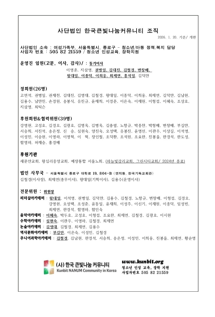 2026년 사단법인 한국큰빛나눔커뮤니티