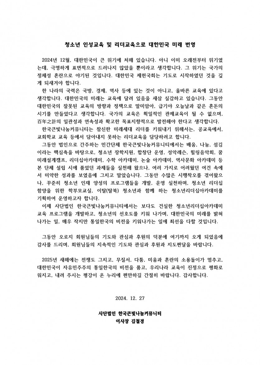 한국큰빛나눔 커뮤니티 Kunbit NANUM Community in Korea